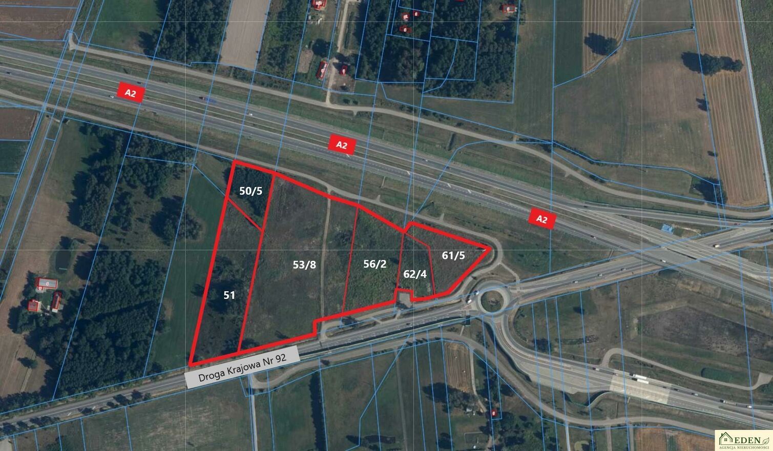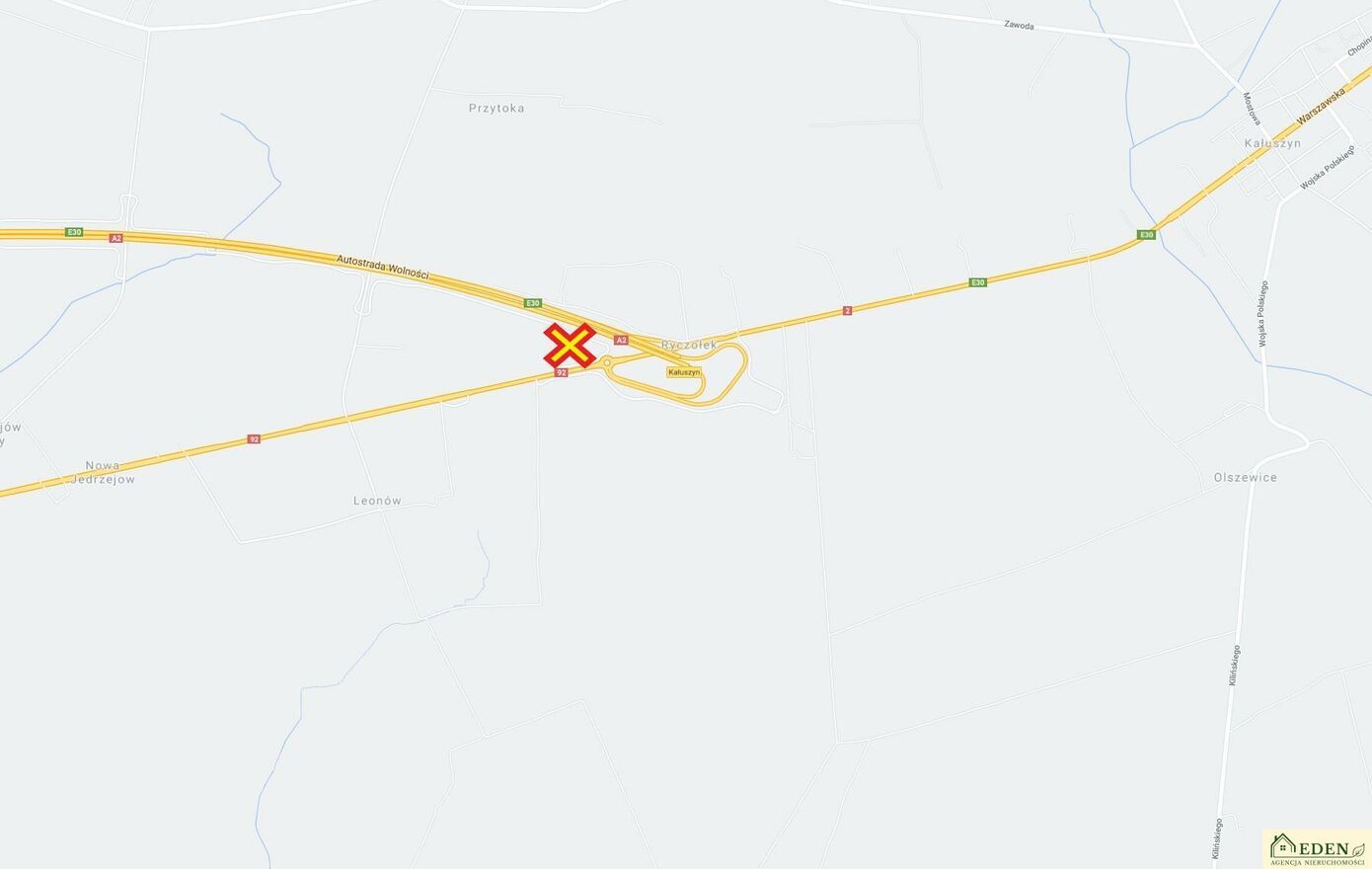 Sprzedam działki inwestycyjne o łącznej powierzchni ok. 4,4 ha z pozwoleniem na budowę dla dwóch budynków usługowych, każdy do pow. zabudowy max. 4800m2 przy Autostradzie A2 w miejscowości Ryczołek, gm. Kałuszyn, pow. miński, woj. mazowieckie.Nieruchomość z dwoma wjazdami z głównej ulicy oraz drogą serwisową dookoła co umożliwia wjazd na działkę z każdej strony.